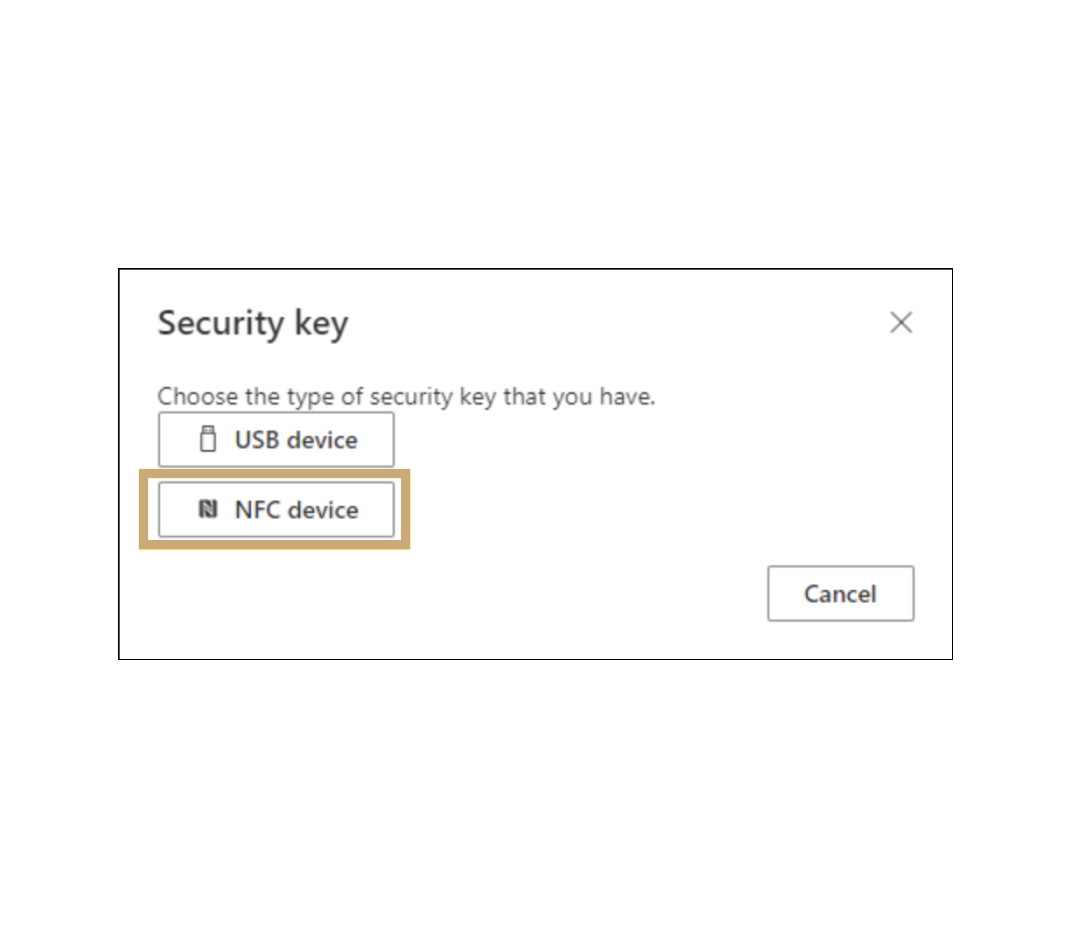 Select “NFC device” from the list of Security key types.