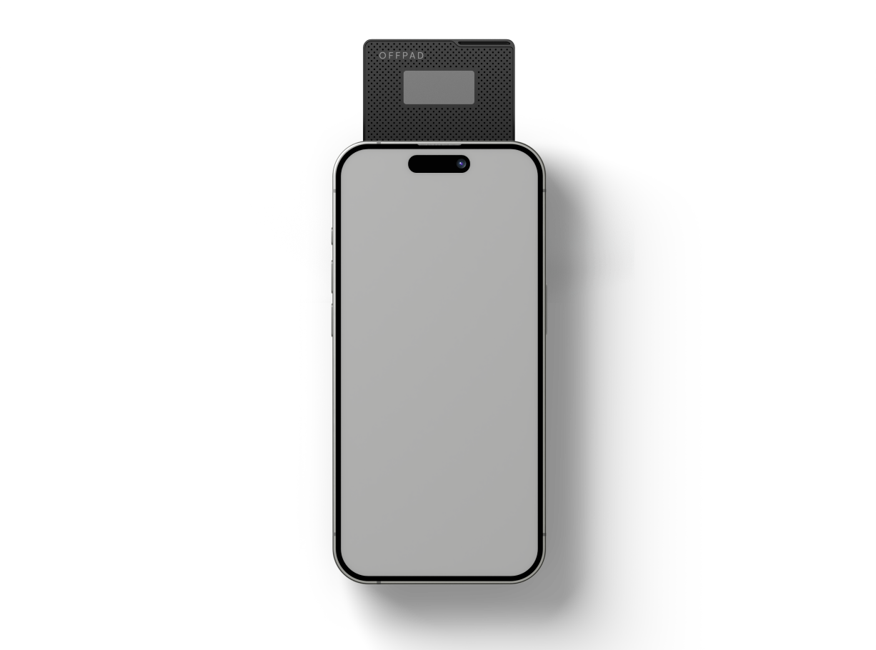 Place the OFFPAD or OFFPAD+ on the back of your iPhone with the screen facing you, as shown in the illustration.